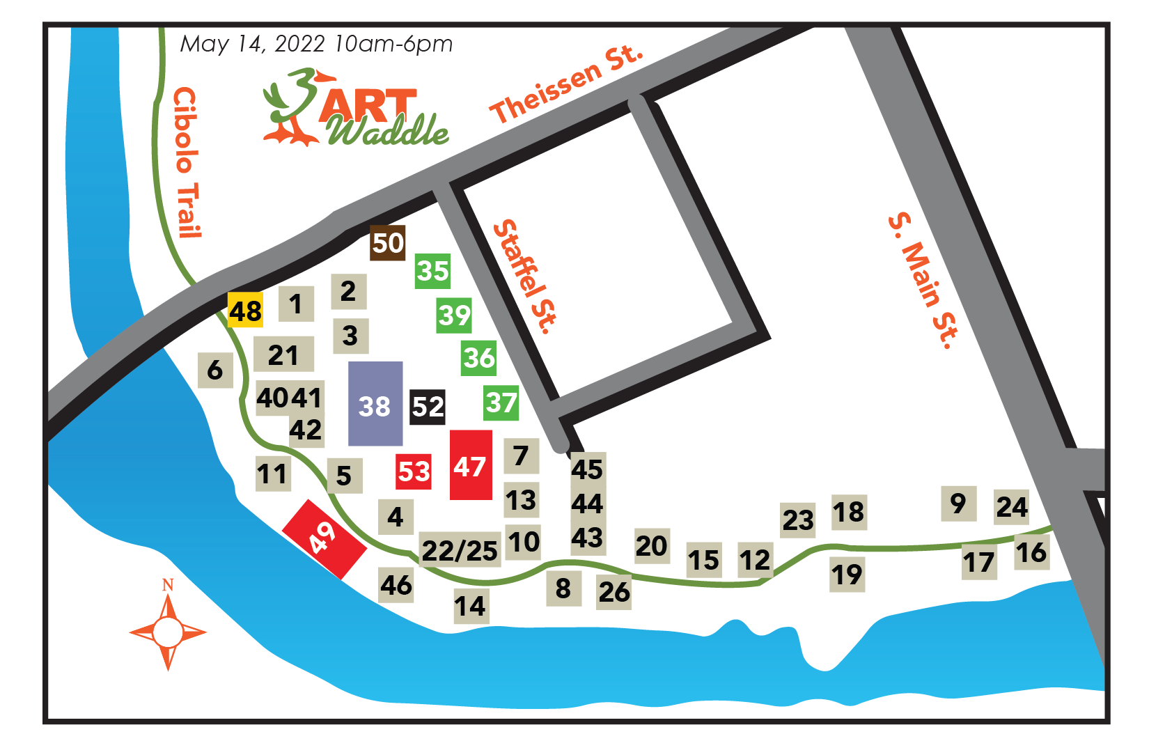 The Waddle was created in the “Flats,” Boerne’s funkiest neighborhood. Over the last decade the Art Waddle’s growth and success has shifted the location of the event to the downtown historical shopping district.